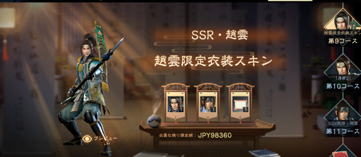 「累計課金金額特典」では趙雲の衣装と武器のスキンを入手可能です。また、スキンの他にSSR・趙雲や騎乗馬なども入手できます。課金を予定している場合は金額特典もチェックしておきましょう。