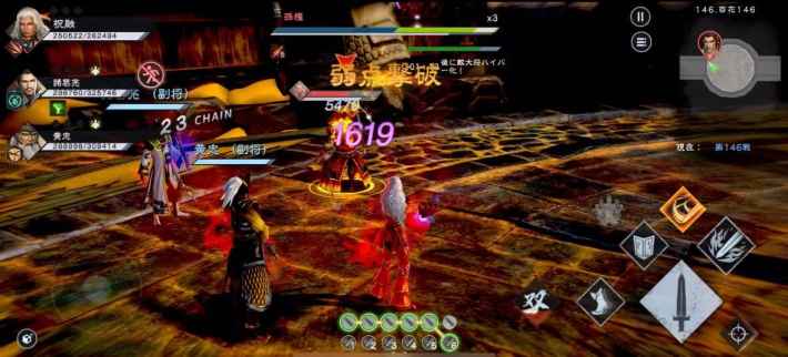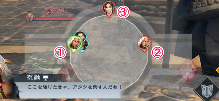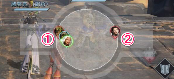 敵武将には、戦闘中に弱点が出現します。弱点のチャージ攻撃を当てて動きを止められると安全に攻撃できるチャンスです。