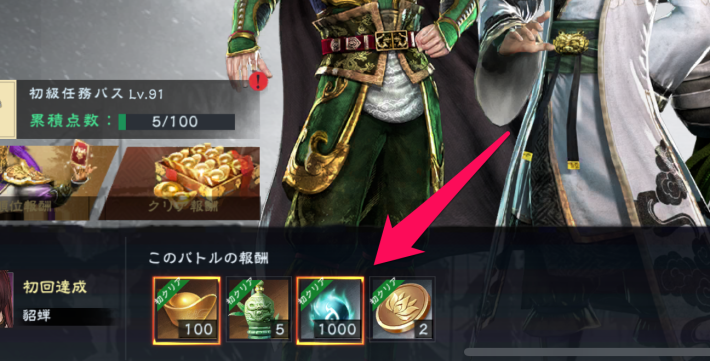 1戦突破するごとにバトル報酬を入手できます。元宝や経験道具などを入手できるので倒せるところまで進めましょう。