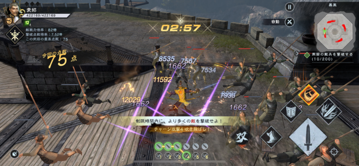 チャージ攻撃にはそれぞれ倍率が設定されており、その中で一番数値の高いチャージ攻撃を使うコンボです。高い体力を持つ敵将や敵武将と戦う時に使うことで、より効率的に戦闘を進めることができます。
