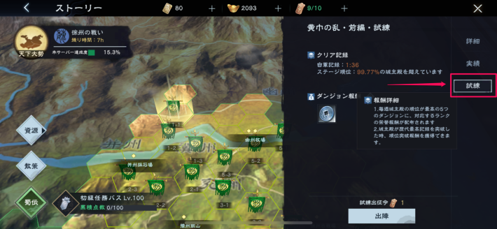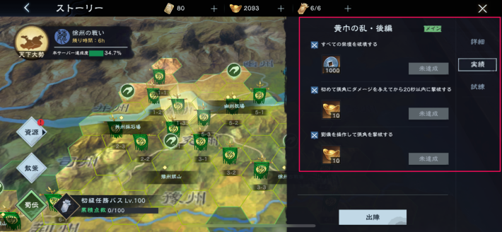 メインクエストには実績が設定されており、達成することで元宝や銀貨を獲得することができます。2回目以降は出征例を消費しないので、実績をすべてクリアできるように挑戦してみよう。