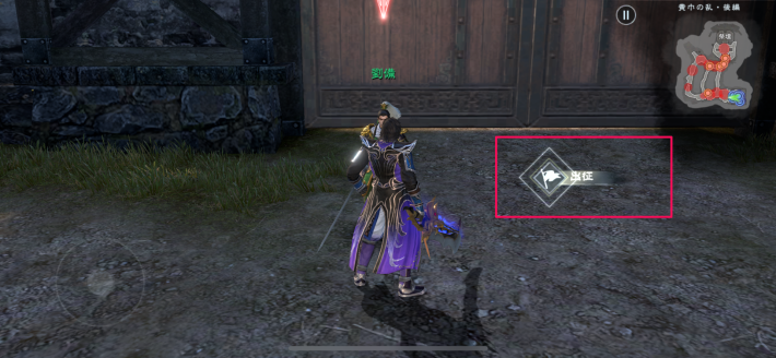 クエストに出陣したら、頭上に▼が表示されているNPC近づき、出征をタップすることでステージが開始されます。