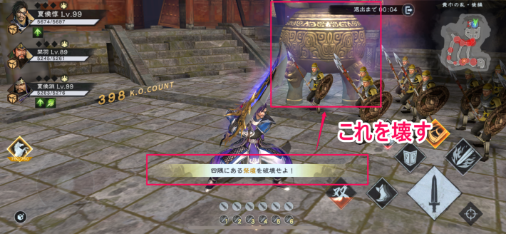 ステージによっては目標に横道に逸れて階段を上らなければならないステージや、指定された祭壇を壊さなければならないステージがあります。ステージ中の武将の会話や画面右の目標をしっかりと確認しましょう。