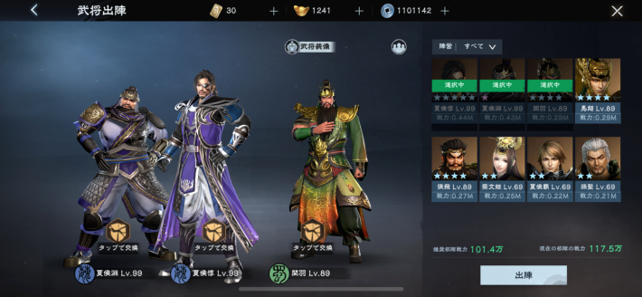 プレイするコンテンツに適した武将を選ぶことで攻略がとても簡単になります。例えば「暴風」というコンテンツでは数百体と敵兵を倒す必要があるため、広範囲を攻撃できる武将を選ぶことでスムーズに攻略することができます。