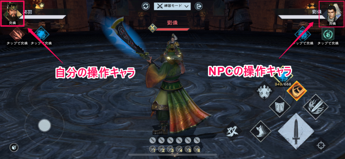 画面上の「交換」をタップすると、自身の操作キャラとNPCのキャラを変更できます。