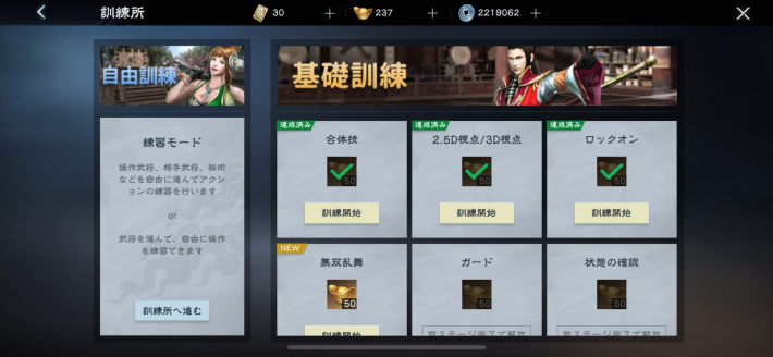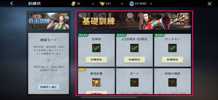 まずは、基礎訓練の中から挑戦できる訓練をタップします。クリアするごとに次の基礎訓練が解放されていきます。
