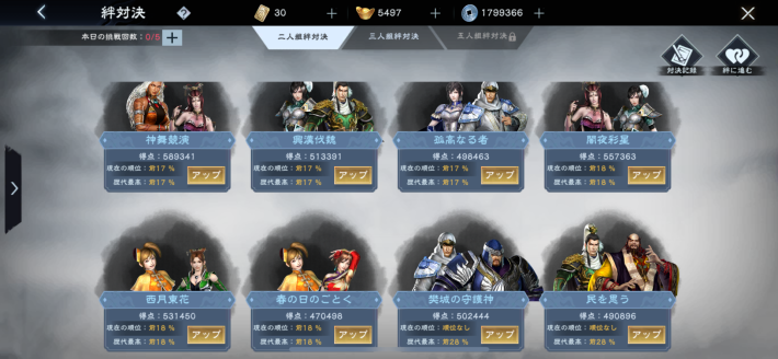 城主レベル73で解放される絆対決は、大量の元宝や銅雀幣を獲得できます。銅雀幣は銅雀商店で、武将の片と交換できるので、毎日忘れずにこなすようにしましょう。