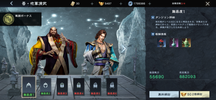 | 城主レベル50 | 知謀の頂(晋・他軍演武) |