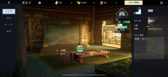城主レベル17で解放されるギルドに加入すると、ギルド加入者限定のイベントやギルド限定の報酬を受け取ることができます。序盤からギルドに加入することで少しずつですが貢献幣を貯められ、ギルド商店で武将の片を集めて新しい武将を入手する手助けになります。