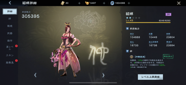武将のレベル上げが可能に