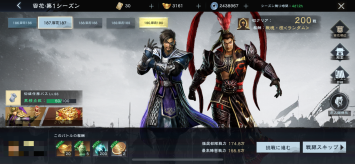 百花は1ステージ攻略することに元宝を獲得でき、計5種類の百花があるため大量の元宝を獲得できます。その他に戦魄経験値や礼器の強化素材も手に入るので戦力の強化も進められます。