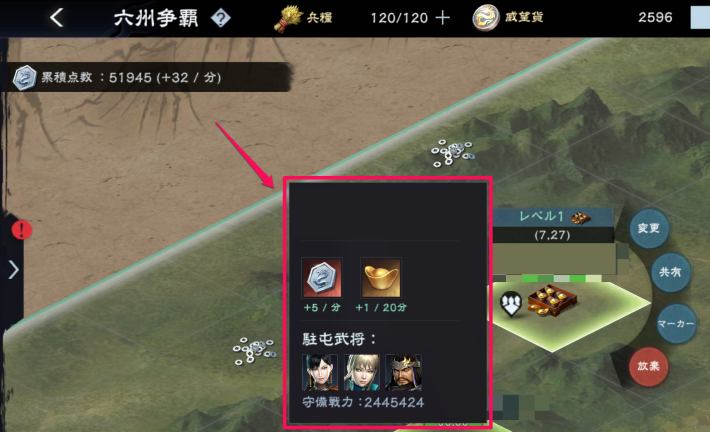 銀貨や元宝などを時間経過で生産する重要な領土には、所持戦力の中でも強力な武将を優先して配置し確実に守りましょう。