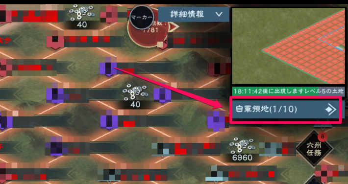 自身が占領した時は、所持している武将を駐屯させることが可能です。駐屯中の武将が他プレイヤーに倒されることで、その領土を失ってしまいます。駐屯中のキャラは他プレイヤーの領土に出征する際には使用できないため注意しましょう。