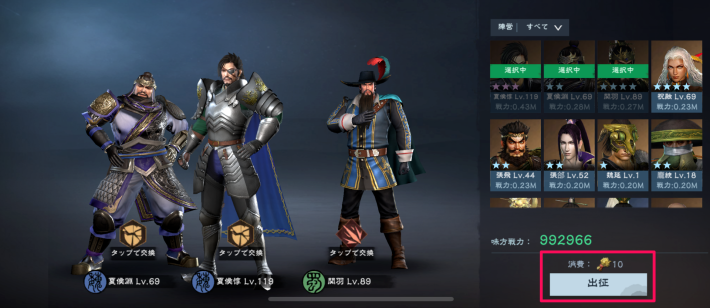 六州争覇は自分より戦力が低い相手と戦うことが攻略のポイントです。自分よりも戦力が高い相手に勝つことは難しいため、できるだけ自分より戦力が低い領土に出征しましょう。六州争覇は1日5回まで無料で「偵察」が可能で、出征前に敵の戦力を知ることができます。