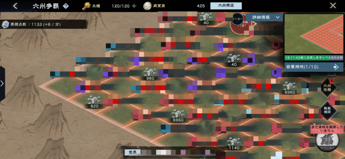 まずはキャラを出征させ領土を広げていきます。各プレイヤーが1度に占領できる領土は最大10個まで。上限に達した場合は領土を選択して放棄できるため、収益の高い領土を残してアイテム獲得量を増加させましょう。