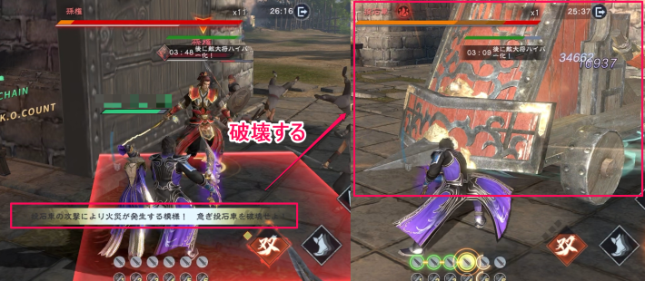 群英合戦のボスは、ステージにさまざまなギミックが用意されています。ギミックを攻略しないと大ダメージを受けたり、こちらの行動を阻害されたりして攻略が難しくなってしまいます。ギミックが発動した際は、画面中央にテキストで表示されるので解除するようにしましょう。
