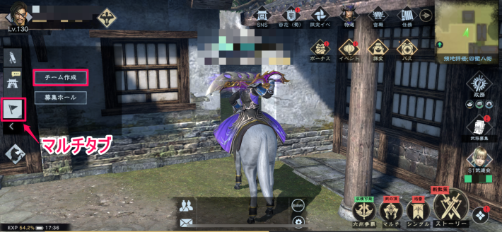 メイン画面左のマルチタブから、チーム作成をタップすることでもロビーを作成できます。