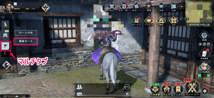 メイン画面左のマルチタブから、「募集ホール」をタップすることでもロビーを探せます。