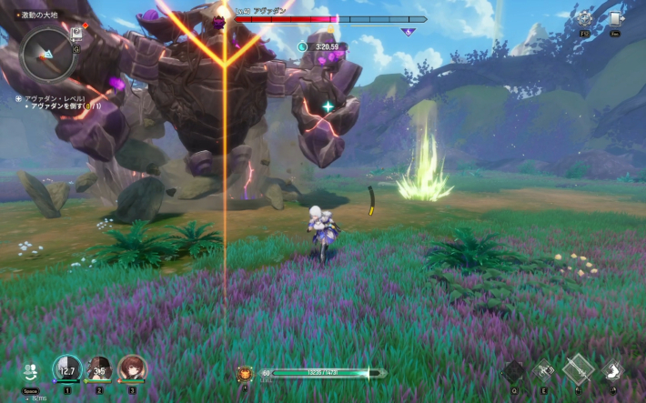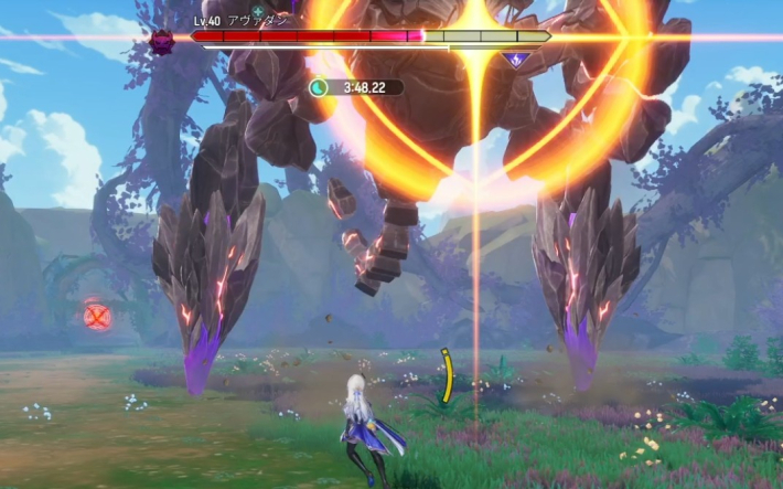 アヴァダンの大技中に表示されるクラッシュゲージは、雷属性の攻撃でのみ蓄積可能です。大技は、正面にレーザーを放ちながら周囲にエネルギーを放出する攻撃なので、回避しつつ雷属性ダメージでクラッシュを狙いましょう。