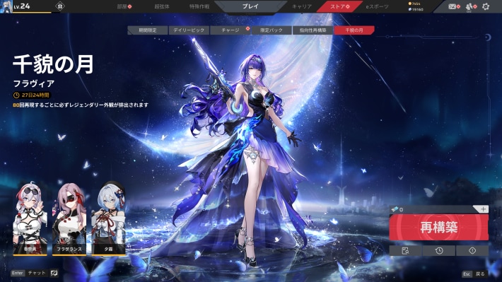 期間中、フラヴィアの新スキンがガチャで登場します。その他にもフラグランスや夕霧、香奈美が出現するので、欲しい場合はガチャを回してみましょう。