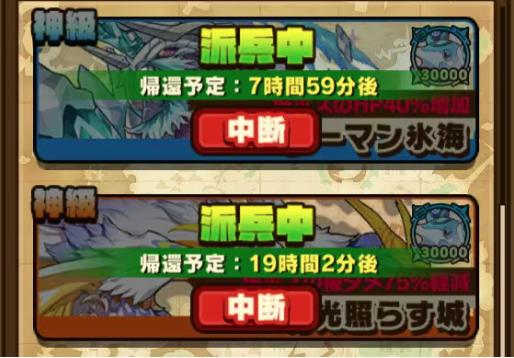 「派兵」システムは、砦に手持ちのモンスターを設定することで、時間経過で自動的に砦を制圧してくれる。どうしても攻略の厳しい既存のダンジョンがある場合は、有効活用しよう。まずは砦を一掃して、城ボスへのバフ解除と味方へのデバフ解除をしよう。