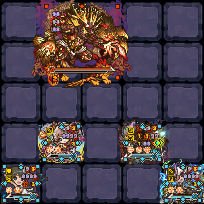 | ③ | 二方倒反 | 周囲マス以外にスタンダメージ。ボスは1ターンの間攻撃力アップ&反撃状態 |