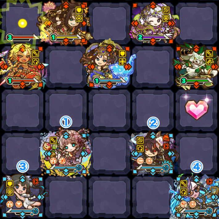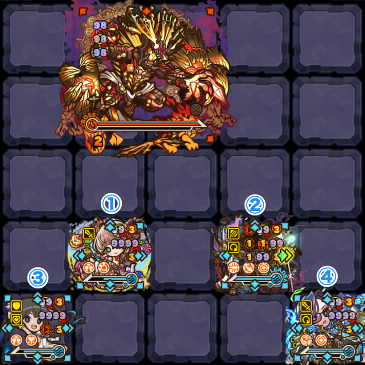 | ③ | 四方痛恨 | 斜め全列に連続スキルダメージ |