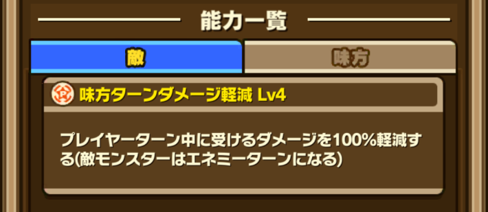 中ボスの能力により、敵の行動ターン中に受けるダメージは50%軽減される。効率的にHPを削るなら、プレイヤーの行動ターン中に発動する攻撃スキルをメインに戦おう。