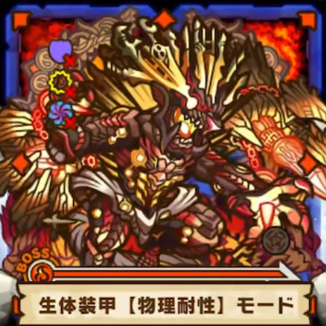 | ② | 生体装甲 【物理耐性】 モード | ボスは2ターンの間物理・スキル反射、ブロック、物理ダメージ減衰、スキルダメージ増加状態 |