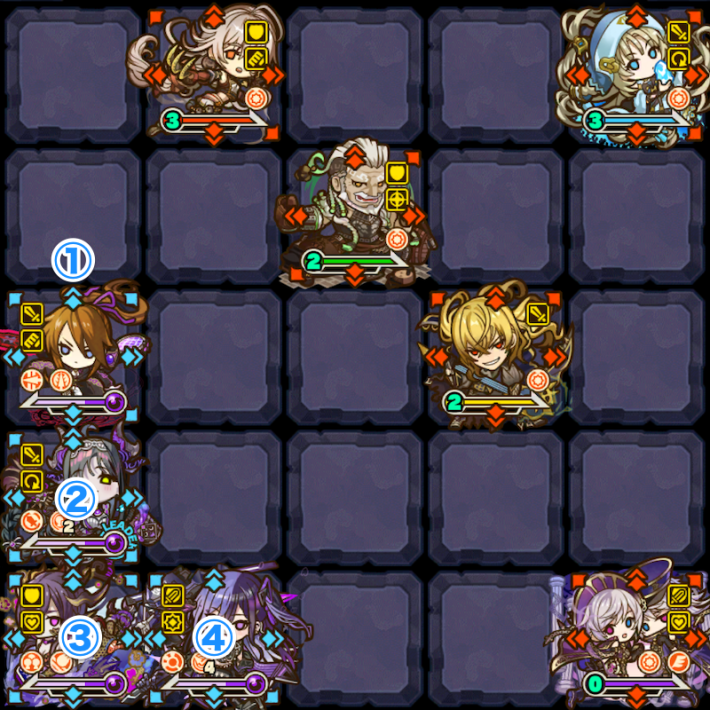 ③ | 四方聖印 | 盤面固定十字列にスタンダメージ&スキルターンを3ターン増加 |