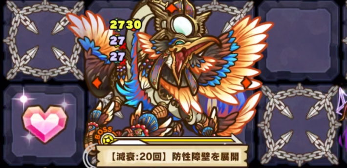 隙を衝かれた後 | ボスは30ターンの間スキル使用不可/攻撃・スキル使用不可シール状態、ダメージ減衰状態 |