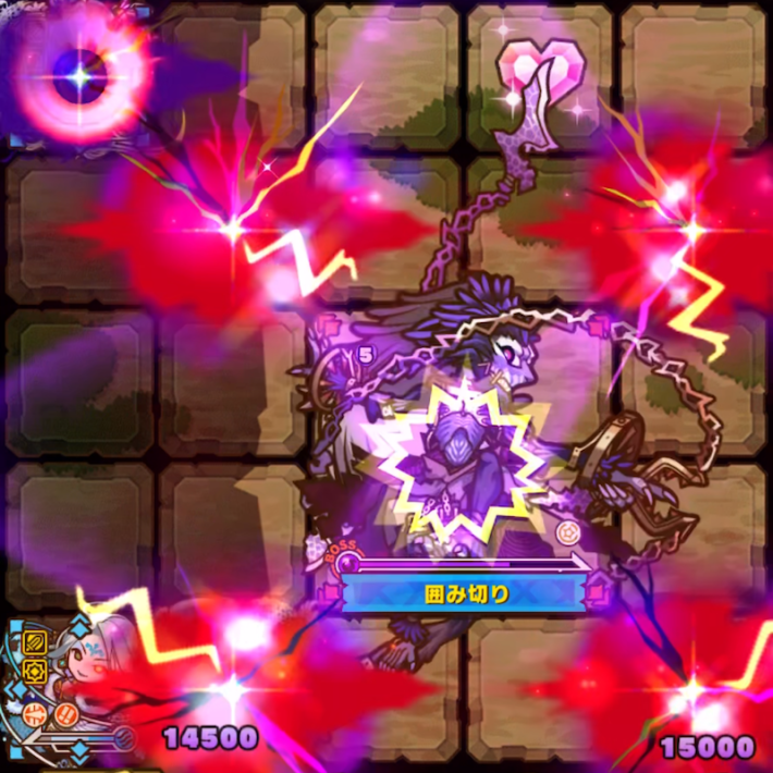 | 24コンボ以上で攻撃 | ボスはHP減少&周囲マスに全マスノックバック+5000スキルダメージ(1回のみ) |