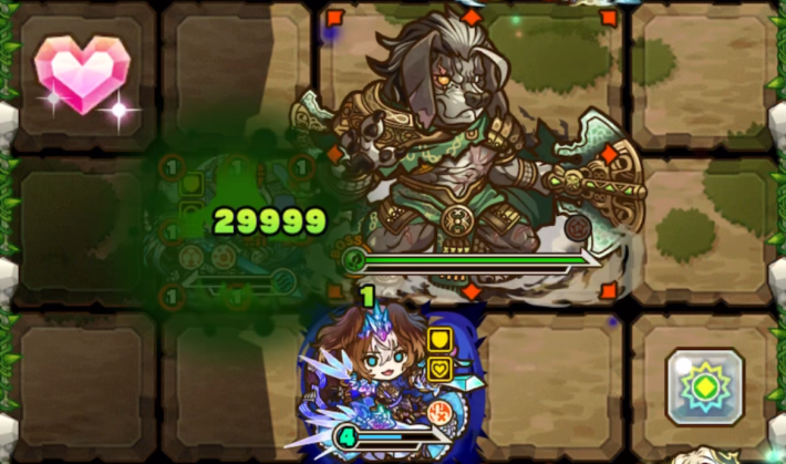 | 20コンボ以上で攻撃 | プレイヤーに3ターンの間ダメージ無効シールを付与&周囲マスのノックバック+1ダメージ |