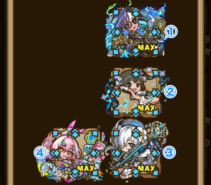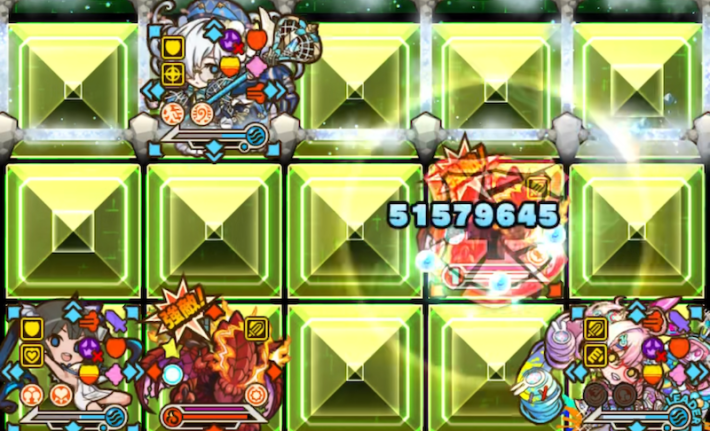 第2エリアやボス戦ではリーダースキル効果を含む復活に反応して、割り込みスキルで複数のデバフを付与される。99ターンの間攻撃力ダウン、ブロックシール、復活不能を付与されるので、火力を出せないと勝機はない。そのため復活を利用できるのは第1エリアまで。
