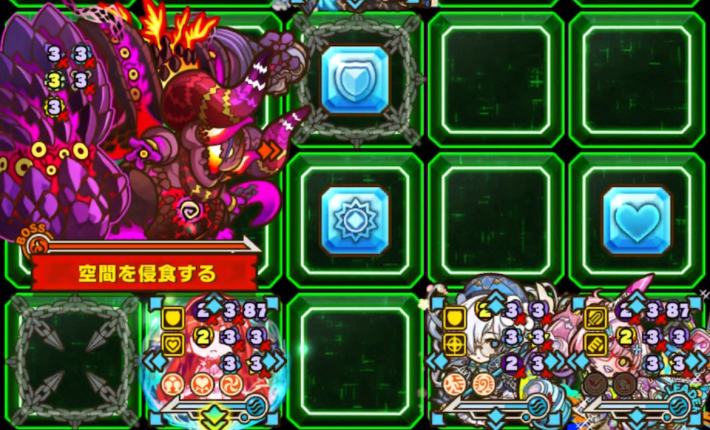 第1エリアでボスに関するヒントを貰えるが、広範囲へ強力なダメージもしくはHP減少が来ると予想される。範囲外へ逃れるなら盤面移動スキルを用意、HP減少ならブロックによる耐久などが要求されそうだ。