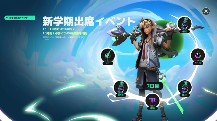 | 7日目 | ゼフ「新学期」スキン(レア等級) |