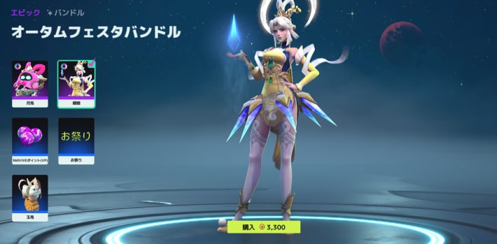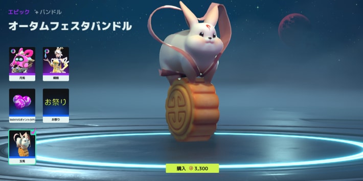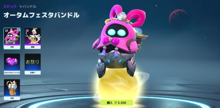 オータムフェスタバンドル ・月兎 ・嫦娥 ・360VIVEポイント ・お祭り ・玉兎 | 5,250TCコイン →3,300TCコイン |