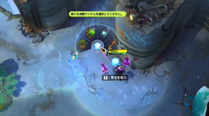 消費アイテムを持てる数は限られています。最大数まで所持している時に他のアイテムを拾おうとすると今持っている消費アイテムが表示されるので、Eを長押しした状態で捨てたいアイテムにカーソルを合わせて離しましょう。
