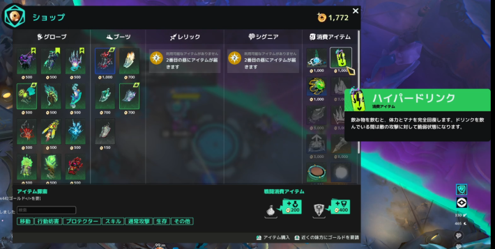 消費アイテムはベースキャンプなどにあるショップで購入可能です。どの消費アイテムもやや高価なため、レリックやグローブなどのアームデポを買い揃えてから購入するのがおすすめです。