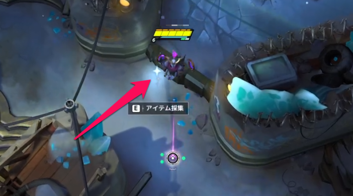 マップ各地にあるキラキラを調べることでも消費アイテムを入手できます。Eキーでアイテムを採集しましょう。