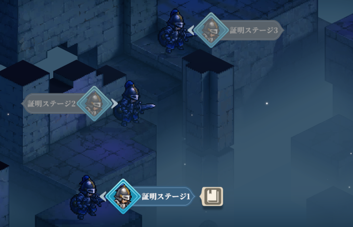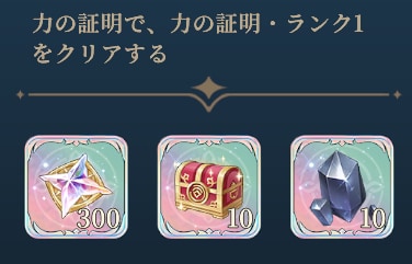 力の証明はステージ攻略形式のコンテンツです。ランク6までの段階があり、ランク毎にいくつかのステージがあります。クリアしていくことでどんどん次のステージが解放されていくため、自分のペースで進めていきましょう。