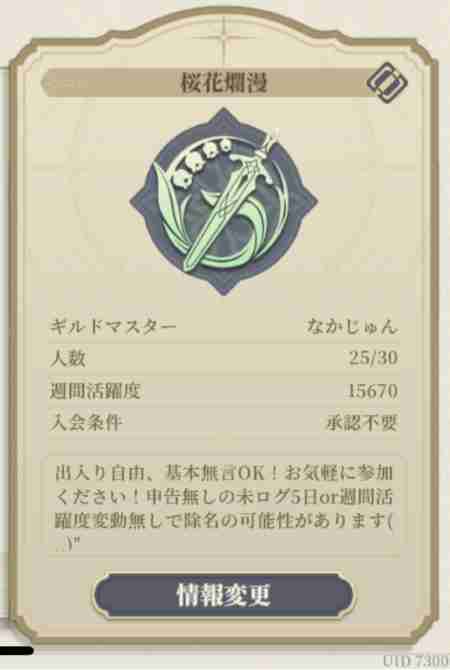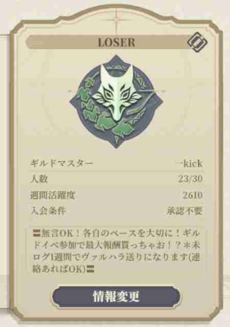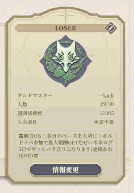 マスター交代を機に、リアルを優先していただけるよう、除名などギルドのルールを変更致しました('◇')ゞ