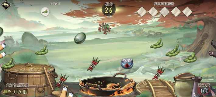 畑などで入手した食材を使い、名声ptを増加させたりお手伝いの遊歴時間を増加させる料理を作成できます。ミニゲームをプレイして料理を完成させましょう!