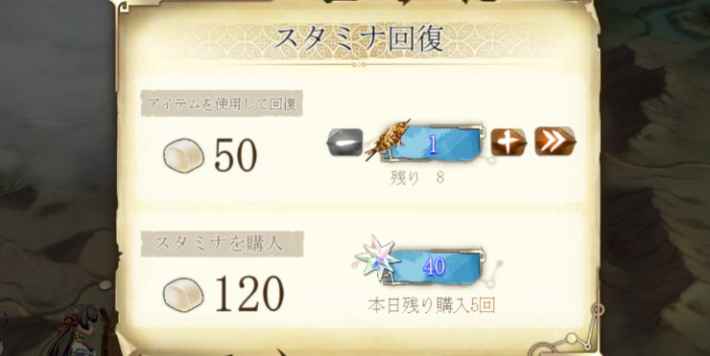 | ▼スタミナ消費 | ・素材集め ・自然回復はスタミナ上限を超えない ・アイテム使って回復も可能 |