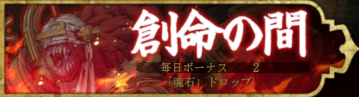 創命の間のクリア報酬は魂石です。ステージは「炎・氷・雷・闇」の4種類が存在し、曜日によって変化します。ステージにより手に入る魂石の種類が異なるため、魂石を装備するキャラに応じて挑むかどうかを判断しましょう。毎日ボーナスは2回です。