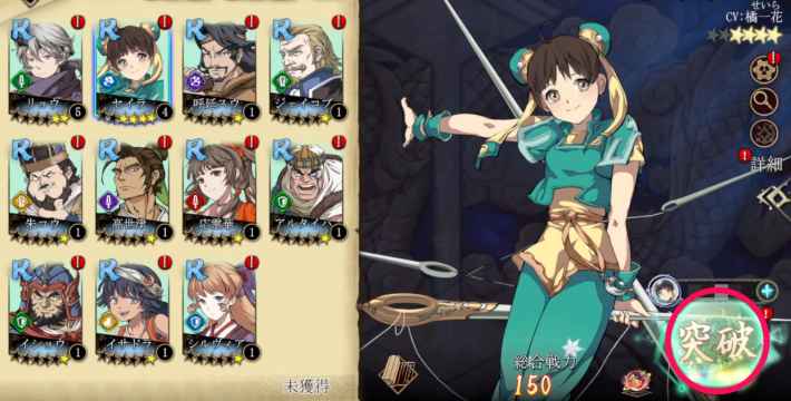 突破素材の精魂は、ガチャで同じキャラを複数回引くことで入手できます。初めて引いた場合はキャラの獲得のみで、精魂は手に入らないので注意しましょう。