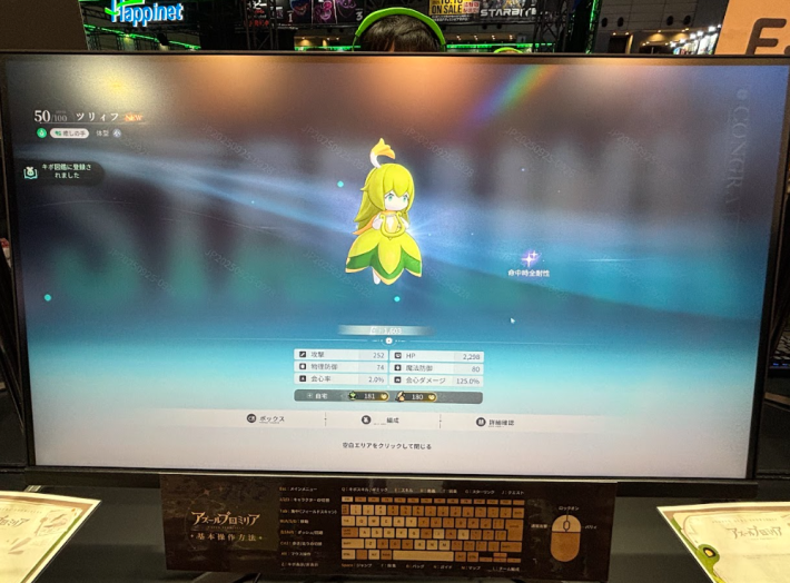 試遊エリアの中央モニターでは、おそらくガチャ演出と思われるキャラクターの映像が流れていて、どのキャラを使おうか、事前に決めることができました。