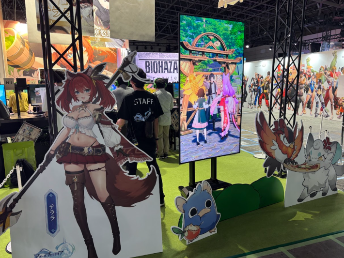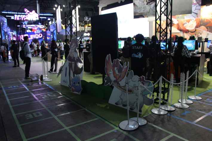 また、要所要所にキャラクターのパネルやのぼりなどが展示されていて、並んでても飽きの来ないブースになっていました。