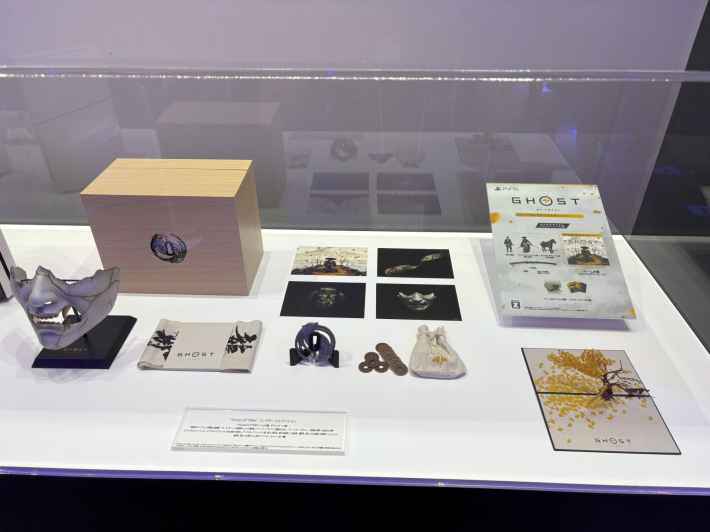 『Ghost of Yōtei』コレクターズエディションに同梱されるグッズや、PlayStationデバイスの展示も目を引きます。
