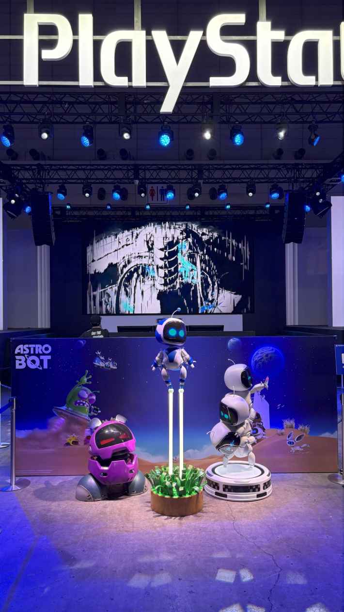 ブース入口では『アストロボット』の「アストロ」たちがお出迎えをしてくれます。なお、ゲームの『アストロボット』はファミリーゲームパークでの出展になります。